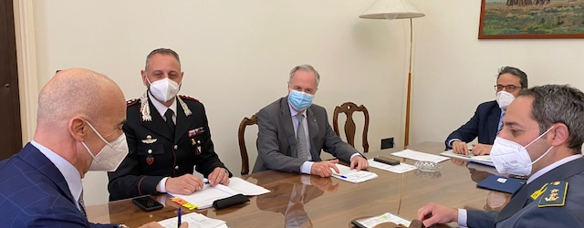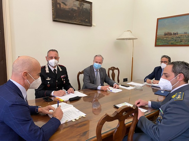 Nella mattinata odierna si è tenuta, presso il Palazzo del Governo, presieduta dal Prefetto, la Riunione Tecnica di Coordinamento delle Forze di Polizia, cui hanno preso parte il Questore, dr. Edgardo Giobbi, il Comandante provinciale dei Carabinieri col. Germano Passafiume ed il Vice Comandante provinciale della Guardia di Finanza, ten. col. Giovanni Ferrajolo.