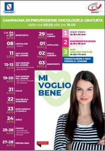 Continua la campagna “Mi Voglio Bene” per la promozione degli screening oncologici. Dopo gli eccellenti risultati registrati alle prime tappe del tour effettuato con l’ambulatorio mobile a Benevento, Ceppaloni e San Leucio del Sannio, l’Asl si appresta a promuovere le prossime tappe nei vari comuni del territorio sannita. Le persone che rientrano nel target previsto riceveranno un sms per aderire all’iniziativa; chi non dovesse ricevere alcuna comunicazione e rientra nelle specifiche fasce d’età, può recarsi presso le piazze in cui sosterà il camper dalle ore 9,00 alle ore 18,00 e chiedere di essere sottoposto ai vari esami di screening.
