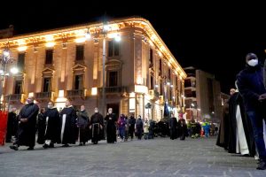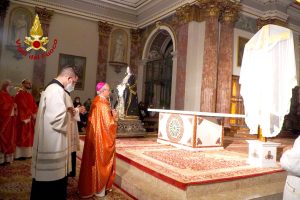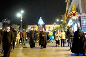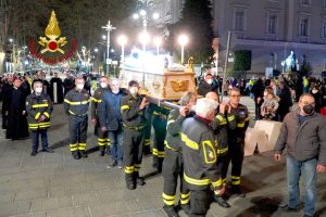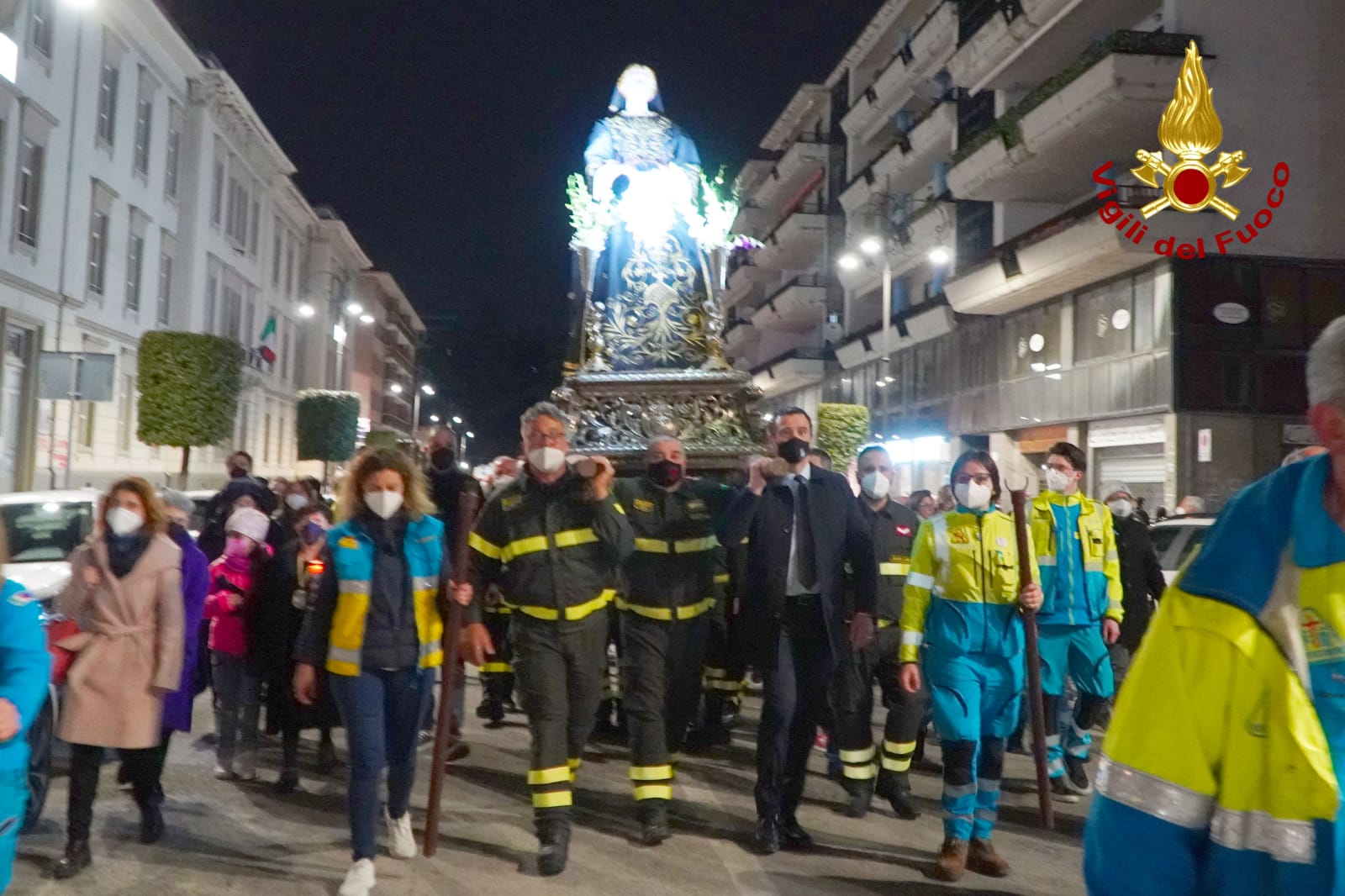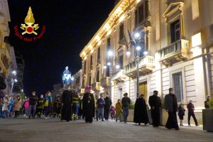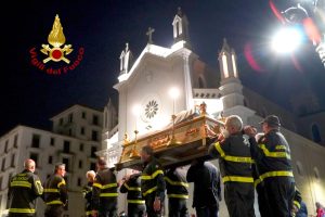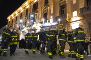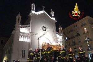 Una Via Crucis singolare e suggestiva quella che è andata in scena ieri sera ad Avellino. I Vigili del Fuoco unitamente all’associazione Nazionale del Corpo, e alla Confraternita della Misericordia, accogliendo con entusiasmo l’invito ricevuto dal Vescovo di Avellino S. E. Monsignor Arturo Aiello, hanno partecipato alla processione della Madonna Addolorata portando a spalla la statua del Cristo e della Madonna lungo le principali strade della città per celebrare la Passione di Cristo del Venerdì Santo. È stato un gesto toccante sotto l’aspetto religioso ma anche ricco di speranza, perché, così come i Vigili del Fuoco e la Misericordia hanno rappresentato dopo il terremoto del 1980 il simbolo della rinascita di un territorio colpito da quel grave evento sismico, così si spera che Vigili del Fuoco e la Misericordia diventino di nuovo il simbolo della rinascita dell’Irpinia dopo la pandemia da Covid 19.