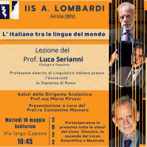 ”Mente feconda e di autorevole rigore accademico, Luca Serianni lascia un incolmabile vuoto nel mondo della cultura nazionale”. È quanto afferma Maria Pirozzi, dirigente scolastico dell’Istituto superiore statale “Alessandro Lombardi” di Airola, in occasione dell’improvvisa e drammatica scomparsa del professore Luca Serianni, già ordinario dell’Università di Roma La Sapienza, uno dei più influenti studiosi della lingua italiana.