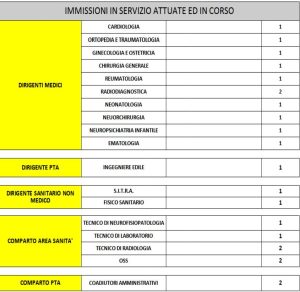 Rispetto al fabbisogno di personale per l’anno 2022, nel quale era previsto l’arruolamento di n. 145 unità, questa Direzione Strategica ha provveduto, nei primi tre mesi di mandato, alla immissione in servizio e all’avvio delle procedure di reclutamento per n. 70 unità.