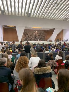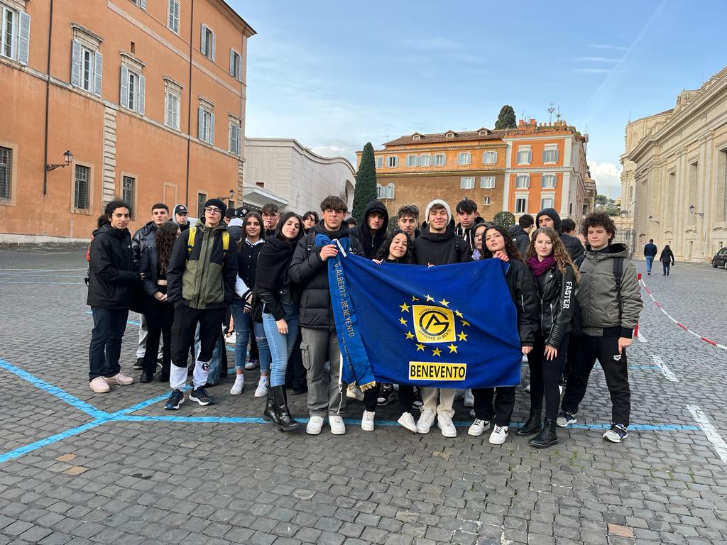 Gli studenti dell’IIS G. Alberti, insieme ad altri 6000 giovani, provenienti da tutta Italia, hanno partecipato all’udienza con Papa Francesco che si è svolta lunedì 28 novembre nell’Aula Paolo VI, nota anche come Aula Nervi, in Vaticano. L’evento si colloca nell’ambito del Programma Nazionale di Educazione Civica e di cura delle giovani generazioni denominato “Per la pace. Con la cura”, promosso per l’anno scolastico 2022-2023 e che si concluderà con una edizione speciale della Marcia della pace PerugiAssisi