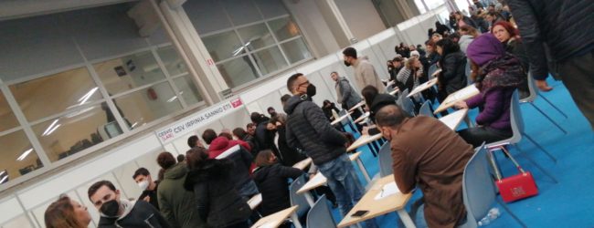 Caos concorso al Pala Fiere di Ariano Irpino. La selezione indetta dal Comune di Avellino per l’assunzione di vari profili da impiegare nella pubblica amministrazione di Palazzo di Città sembra essere partita davvero male e in parte è già slittato a data da destinarsi. Se non arriverà prima il suo completo annullamento. Confusione all’accesso dei locali, concorrenti per le diverse tipologie di posizione mescolati insieme e assenza di qualsiasi controllo. Tra gli interessati c’è chi ha parlato anche di domande fotocopiate e portate all’esterno, ingressi non verificati e persone in sala con telefonini accesi. Saltato il turno delle 8.00, dopo oltre 5 ore e mezza di attesa, si punta ad effettuare almeno una delle prove scaglionate. Ma le irregolarità segnalate alle forze dell’ordine direttamente dai concorrenti sono tante e il rischio di dover fare tutto daccapo è altissimo.