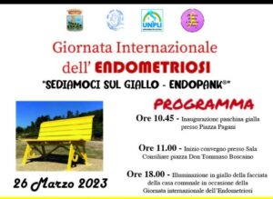 La cerimonia si terrà domenica 26 marzo alle ore 10:45 con l’inaugurazione della panchina in piazza Pagani e poi il convegno “Endometriosi, dalla diagnosi alla vita di tutti i giorni” presso la sala consiliare in piazza don Tommaso Boscaino.