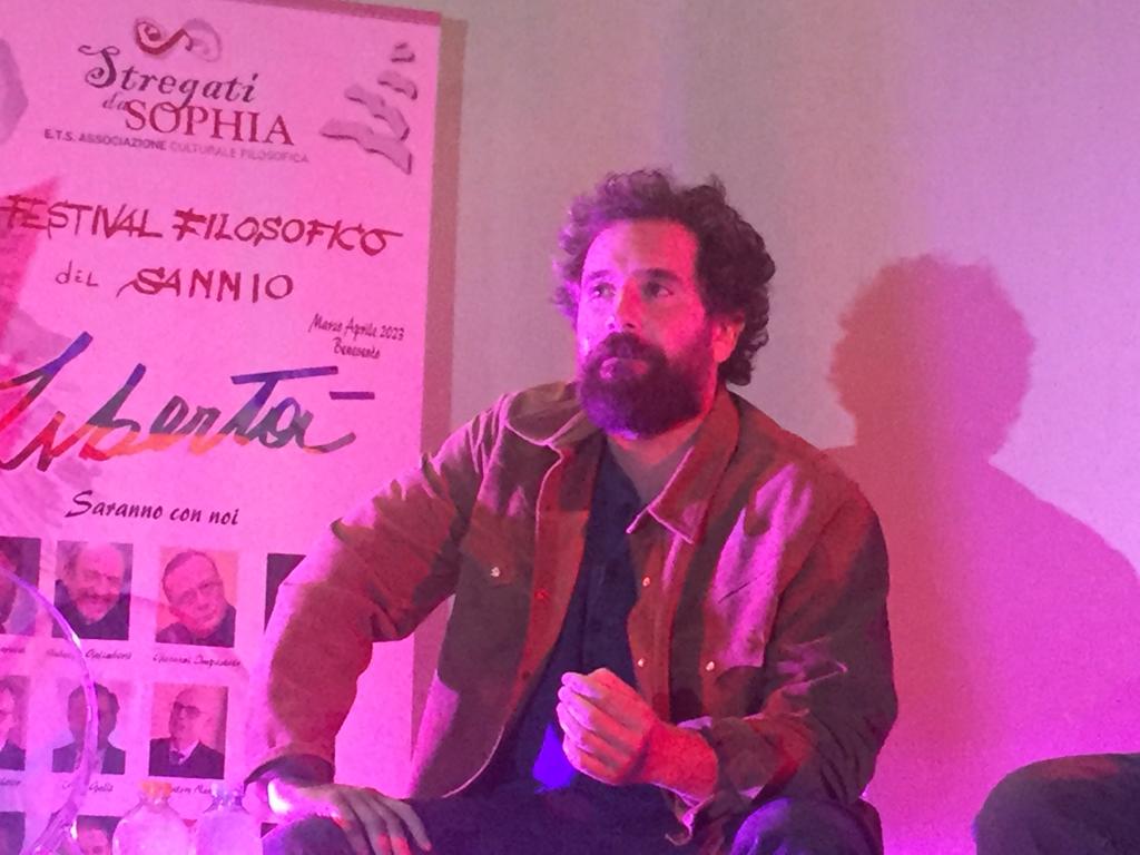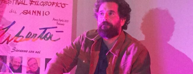 Il cantautore romano con origini irpine, (lo ha ricordato in più occasioni) ha disquisito con Carmela D’Aronzo e il professore Riccardo Chiaradonna, sul tema “Viaggio intorno a musica, filosofia e libertà di pensiero”