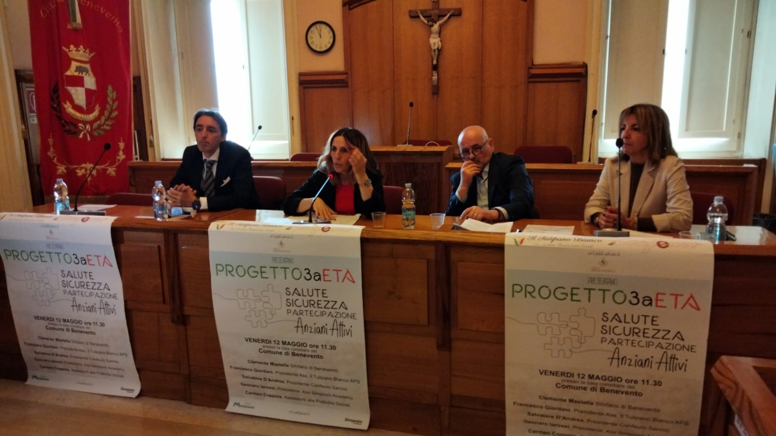 E’ stata presentata al Comune di Benevento l’iniziativa “Terza Età – Anziani Attivi, percorsi e strumenti per una vecchiaia attiva”, progetto patrocinato dal Comune di Benevento e promosso dall’Associazione il Tulipano Bianco e dalla Confeuro Sannio in collaborazione con l’Associazione SIMPOSIO ACADEMY, il Centro Diagnostico G.B. Morgagni di Benevento ed il supporto della Croce Rossa di Benevento.