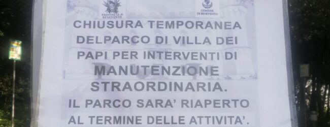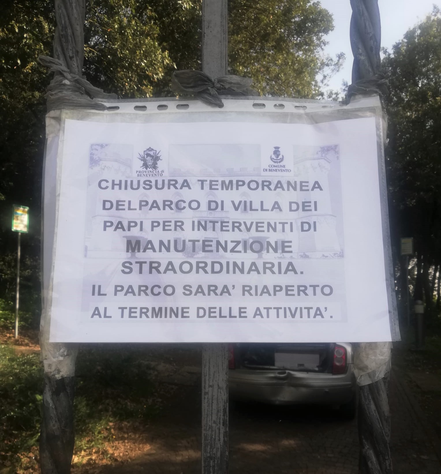 Il Settore Patrimonio della Provincia di Benevento ha disposto la chiusura al pubblico dei Giardini della Villa dei Papi per consentire la manutenzione straordinaria ed urgente.