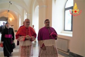 Naturalmente, in prima fila il principale organizzatore e fautore dell’evento, l’Abate di Montevergine Padre Riccardo Luca Guariglia. Con il segretario di Stato Vaticano i due componenti della Missione Pontificia: Padre Abate Mauro Meacci di Subiaco e Padre Abate Diego Gualtiero Rosa di Monte Oliveto Maggiore.