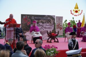 Il ministro Sangiuliano ha ricordato il suo legame con Montevergine: “Oggi celebriamo una storia importante, credo che, in un luogo come questo, ci siano i pilastri dell’Occidente. Perchè, come ci ricorda anche Giacomo Leopardi, “…negli eremi, nei monumenti, nelle pietre c’è la nostra storia”. In questi luoghi c’è la testimonianza di ciò che siamo stati e di ciò che siamo diventati”.