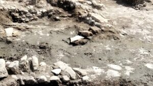 Piazza Cardinal Pacca, il giorno dello scoperchiamento delle due tombe rinvenute durante il corso degli scavi. Dal cantiere si nega che tutto ciò possa verificarsi oggi ma è atteso un funzionario della Soprintendenza in piazza per un monitoraggio più esaustivo.