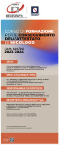 ll corso per il conseguimento dell’attestato di Micologo (D.M. 686/96) è destinato al personale sanitario dei Dipartimenti di Prevenzione delle AA.SS.LL. della Regione Campania e sarà svolto dall’HUB di Rete dell’ASL BN, in collaborazione con l’Associazione Micologica Bresadola di Trento; avrà durata biennale, 2023-24, e sarà sviluppato in due moduli.