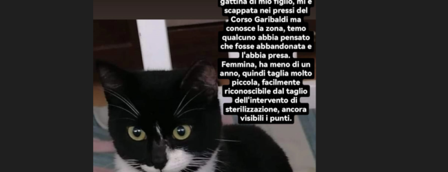 Labtv raccoglie l’appello affinche’ si possa ritrovare la gattina. Chiunque abbia notizie si puo’ rivolgere alla nostra redazione.