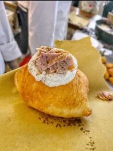 Nel corso della serata Luca ha sorpreso gli ospiti con una sua specialità: le pizze fritte in particolar modo la sua “Mojito pork”.