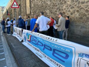 Un sit-in che fa rumore quello del Sappe regionale che questa mattina e’ in protesta sotto le mura del Provveditorato della Regione Campania a Napoli Lucia Castellano. Striscioni bandiere e megafoni per urlare il malcontento delle carceri campane. A partecpare anche una delegazione sannita guidata dal vice coordinatore regionale per il settore minorile della Campania del Sindacato Autonomo Polizia Penitenziaria Sabatino De Rosa.