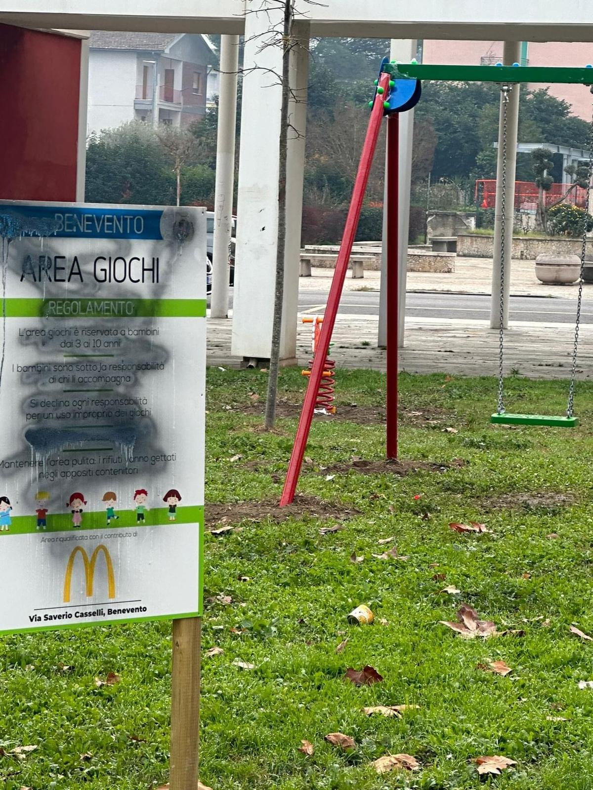 “A quegli incivili che hanno imbrattato i cartelloni del parco giochi appena inaugurato alla spina verde … vorrei dire che il danno lo hanno fatto a tutta la città … i bambini non hanno colpa . Mi chiedo perché !????VERGOGNATEVI IMBECILLI !!!!