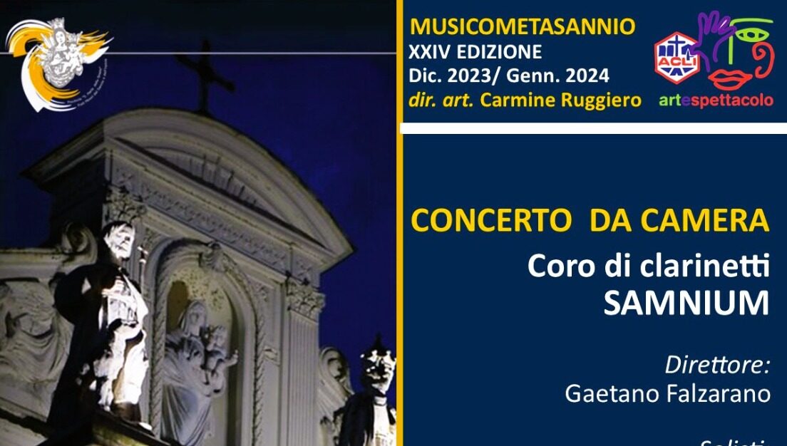 La meravigliosa location ospiterà il Coro di Clarinetti Samnium diretto dal M° Gaetano Falzarano e i solisti Salvatore Ruggiero all’Oboe, Salvatore Tanucci, Leandro Fanelli e Sabrina Mercurio al Clarinetto.