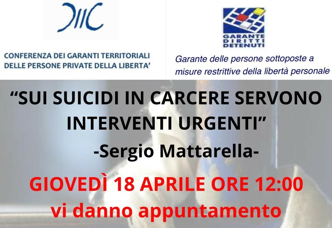 Il 18 aprile 2024, esattamente un mese dopo l’appello del Presidente della Repubblica Sergio Mattarella, che durante l’incontro con la rappresentanza del Corpo di Polizia Penitenziaria avvenuto al Quirinale ha dichiarato: “Sui suicidi in carcere servono interventi urgenti.” La Conferenza nazionale dei Garanti territoriali delle persone private della libertà personale ricorderà i nomi dei detenuti morti suicida, quelli per malattia e altre cause ancora da accertare, nonché i nomi degli agenti di polizia penitenziaria che in questi mesi si sono tolti la vita.