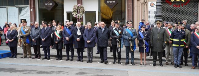 Ad Avellino la cerimonia per il 79° anniversario della Liberazione d’Italia è stata, come da tradizione, celebrata in via Matteotti alla presenza di Autorità civili e Militari. La manifestazione è iniziata alle 10.00 con lo schieramento del Reparto di formazione, al quale è seguito l’afflusso e il posizionamento delle Autorità, del Medagliere dei Combattenti e Reduci e delle Associazioni Combattentistiche e d’Arma, del Gonfalone della Città di Avellino, decorato con Medaglia d’Oro al Valore Civile e Medaglia d’Oro al Merito Civile, e del Gonfalone della Provincia.