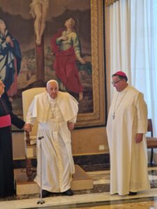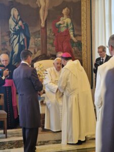 “Cari amici, a Montevergine avete la fortuna di essere ospiti nella Casa di Maria, di vivere sotto il suo sguardo misericordioso, custoditi da ‘Mamma Schiavona’, come affettuosamente e’ chiamata”, ha concuso Bergoglio, “Fate tesoro di questo dono e coltivatelo in voi per poterlo condividere con tutti. Vi ringrazio di essere venuti. Vi benedico di cuore. E vi chiedo per favore di pregare per me”