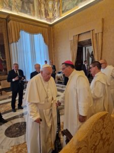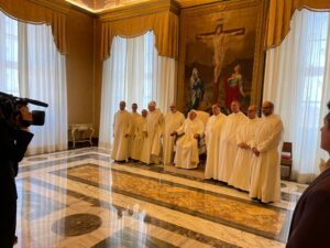 Papa Francesco ha ricevuto oggi la Comunita’ Monastica dell’Abbazia di Montevergine, in occasione del nono centenario dalla fondazione. “Durante la seconda guerra mondiale, la vostra comunita’ ha avuto la grazia di accogliere la Sacra Sindone, portata in segreto presso il vostro Santuario, perche’ vi fosse custodita e venerata, al sicuro dal rischio dei bombardamenti. Anche questa è un’immagine bellissima della vostra vocazione primaria: custodire l’immagine di Cristo in voi, per poterla mostrare ai fratelli” ha detto il Papa.