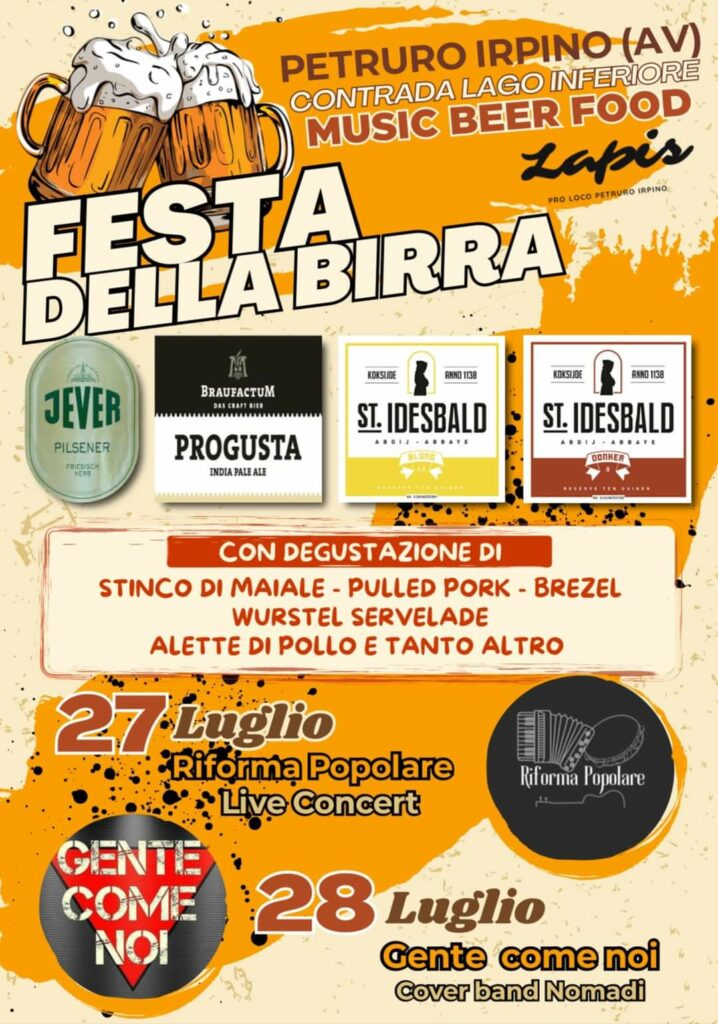 La Pro Loco di Petruro Irpino è lieta di annunciare la prima edizione della Festa della Birra, che si terrà il 27 e 28 luglio 2024. Questo evento promette di essere un appuntamento imperdibile per gli amanti della buona cucina, della birra e della musica dal vivo.