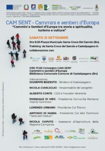 Il Progetto di Cooperazione CAM-SENT, di cui il GAL Tammaro “Terre dei Tratturi” è capofila con il GAL Titerno, attraverso diverse attività specifiche di servizio, prevede l’organizzazione e realizzazione di eventi su scala nazionale e internazionale, indirizzati a veicolare informazioni e a creare attenzione e sensibilità sui Cammini e Sentieri d’Europa, sui suoi itinerari e sui prodotti turistici ad essi collegati.