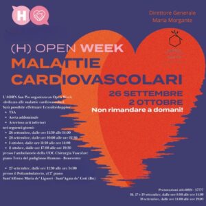Dal 26 settembre al 2 ottobre si terrà l’(H) Open Week dedicato alle malattie cardiovascolari con l’obiettivo di promuovere l’informazione, la prevenzione e la diagnosi precoce di queste malattie, con un particolare focus su aneurisma aortico addominale, infarto cardiaco, patologie valvolari, carotidee e venose.
