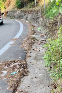 Il problema è aggravato dalla mancanza di senso civico di alcuni automobilisti e passanti che continuano a lasciare rifiuti per strada, contribuendo al degrado. Un giro nella zona rivela scene desolanti: dai marciapiedi costellati di rifiuti fino all’erba appena rasata delle aiuole, da cui spuntano “fiori” di plastica e carta. Questi detriti restano visibili per mesi, se non per anni, senza che nessuno intervenga per ripulire la zona.