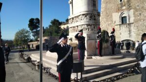 La classica parata militare con carabinieri in alta uniforme e prefetto Moscarella, vicesindaco De Pierro e Presidente della Provincia Lombardi nell’azione della deposiozione della corona d’alloro, all’ombra del tricolore issato al suono dell’immancabile inno nazionale suonato dai ragazzi del Conservatorio e cantato a fil di voce dagli astanti.