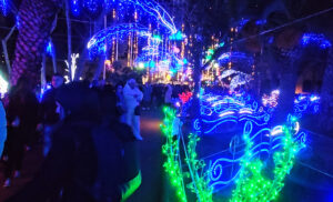 Per le imminenti festività natalizie anche quest’anno a Bacoli il parco Borbonico del Fusaro è stato illuminato a festa. E’ stato riprodotto un parco marino fatto di luminarie dove i pesci colorati danno l’impressione di nuotare tra le onde del mare il cui movimento è simulato dai particolari effetti che producono le luci. Una miriade di lucine colorate e luccicanti che incantano e meravigliano i visitatori ed in modo particolare i bambini che a migliaia, già dalla fine del mese di novembre, stanno letteralmente prendendo d’assalto l’affascinante parco che affaccia sul lago Fusaro.