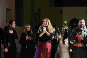 Molto apprezzata ed emotivamente impattante anche la scelta musicale, originale e non scontata, abbinata da Monica Carbini ai vari passaggi del racconto drammatico che ha offerto al pubblico anche notevoli momenti di forte suggestione visiva, anche grazie ai giochi di luce e all’ imponente scenografia offerta dalla Chiesa del Convento San Francesco cui è stato tributato un doveroso e sentito ringraziamento.