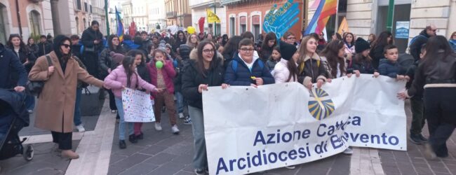 A sfilare anche l’arcivescovo Accrocca che ha lanciato un messaggio ai giovani e il cessate le guerre.’ È importante educare alla pace sin dai bambini piccolini.