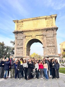 Nel pomeriggio di sabato, gli studenti del Liceo Artistico “Giuseppe Alberti”, guidato dalla Dirigente Silvia Vinciguerra, hanno portato l’arte nel cuore di Benevento. L’istituto, che da quest’anno comprende appunto anche il Liceo Artistico di via Tiengo e il Liceo Classico e Scientifico di San Giorgio del Sannio, ha scelto come scenario per l’evento il simbolo più rappresentativo del territorio beneventano: l’Arco di Traiano.