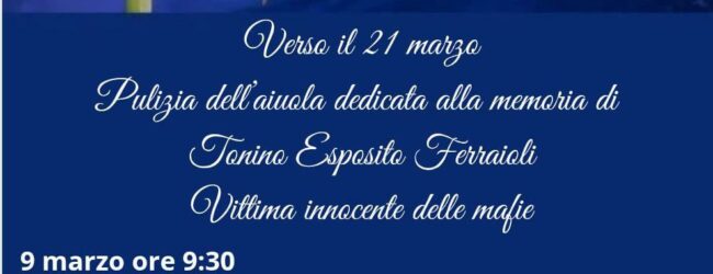 ci si prenderà cura dell’aiuola dedicata alla memoria di Tonino Esposito Ferraioli, Cuoco, scout e sindacalista, ucciso dalla camorra a Pagani per essere stato fedele alla Promessa scout ed al suo incarico di sindacalista della Cgil.
