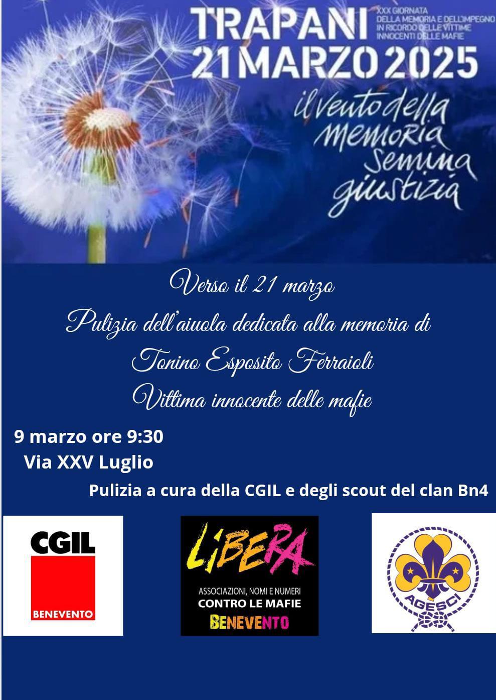 Una mattinata all’insegna del NOI, animata con gesti concreti su iniziativa del Clan/Fuoco del gruppo scout Benevento 4 e della CGIL Benevento, in collaborazione con il Coordinamento Provinciale di Libera Benevento.