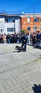A seguire il Dirigente della Polizia Penitenziaria Dott.ssa Valentina Giordano ha presentato le funzioni e le specialità dei Baschi Azzurri. Negli ultimi anni, la presenza della polizia penitenziaria nelle scuole è diventata un tema di dibattito pubblico, con diverse manifestazioni che mirano a sensibilizzare la comunità scolastica e la società nel suo insieme sul delicato equilibrio tra sicurezza e educazione.