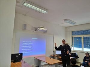 L’incontro, tenutosi nel Laboratorio Informatico dell’Istituto, ha visto protagonista il Comandante della Compagnia Carabinieri di Benevento, Maggiore Emanuele Grio, il quale ha affrontato tematiche di grande attualità come la cultura della legalità, i rischi e i pericoli della rete informatica e dei più emergenti social network, l’uso dell’intelligenza artificiale, la prevenzione e il contrasto del bullismo e del cyberbullismo.