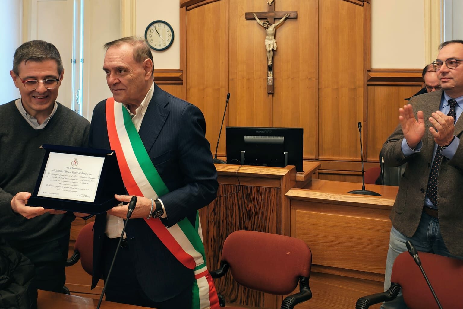 I vertici dell’Istituto hanno fatto dono al Sindaco, di una copia incorniciata del diploma di maturità conseguito da Clemente Mastella proprio presso l’Istituto De La Salle