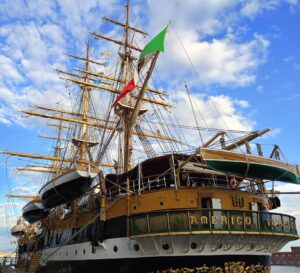 È tornata a Napoli la nave Amerigo Vespucci della Marina Militare che nella giornata di ieri 13 maggio ha fatto il suo ingresso in città al Molo Beverello dove sosterà fino a venerdì 16 maggio. Ed è proprio nella prima giornata che un gruppo di studenti dell’indirizzo del Made in Italy, alcuni docenti e una rappresentanza del personale ATA del Liceo Statale “G. Guacci” di Benevento ha avuto la meravigliosa opportunità di visitare la celebre nave scuola della Marina Militare Italiana, Amerigo Vespucci, attraccata presso il porto di Napoli durante una delle sue soste programmate finalizzate a far conoscere ai giovani i valori, l’etica e la missione della Marina Militare. Entusiasmo e ammirazione per la splendida nave famosa in tutto il mondo da parte di tutti i fortunati che, percorrendo le passerelle tra la prua e la poppa del veliero ha potuto apprezzare la cura degli ambienti, il rigoroso ordine degli strumenti di navigazione e la lucentezza di ogni particolare in ottone della nave, immergendosi e toccando con mano la storia navale, le caratteristiche tecniche e la vita quotidiana a bordo. La delegazione del Guacci durante la visita ha infatti potuto osservare da vicino le vele, le attrezzature di bordo, la sala macchine e gli spazi dedicati all’equipaggio.