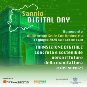 Benevento – La trasformazione digitale non è più una prospettiva futura, ma una necessità urgente. A questa sfida risponde il SANNIO DIGITAL DAY, in programma martedì 17 giugno 2025 presso la sede di Confindustria Benevento, un evento dedicato alle soluzioni tecnologiche più avanzate per la digitalizzazione della manifattura e dei servizi.