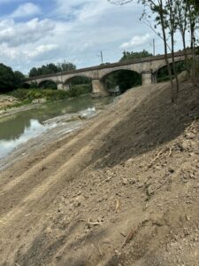 L’intervento più rilevante è stato eseguito in località Pantano. Qui è stata allargata la sezione idraulica del fiume, sistemato e rettificato il canale di scolo esistente che si immetteva nel fiume in senso contrario rispetto al normale deflusso delle acque. Va segnalato che, in alcune aree, la vegetazione spondale ha già ripreso a crescere, coprendo parzialmente le scogliere realizzate; tuttavia, grazie all’attuale tirante idraulico, è ancora ben visibile l’opera eseguita, segno tangibile di un continuo impegno per la messa in sicurezza dell’area.