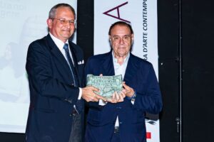 Mario Rosa presidente delle Fabbriche Riunite Torrone di Benevento, premiato dal Lorenzo Di Dieco Produce Manager Rai Documentary, per il suo impegno che da anni valorizza il territorio attraverso l’eccellenza dolciaria e la promozione dell’identita’ gastronomica locale.