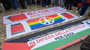 Anche la città di Benevento ha aderito allo sciopero generale indetto per oggi, venerdì 3 ottobre 2025, in segno di protesta contro le politiche di annessione dei territori palestinesi da parte di Israele e in solidarietà con la missione internazionale Global Sumud Flotilla, attualmente in navigazione verso Gaza con l’obiettivo di portare aiuti umanitari alla popolazione palestinese, duramente colpita da mesi di conflitto e isolamento.