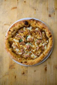 L’impasto, frutto di una lunga ricerca, nasce da farina di vinaccioli ottenuti da uve Aglianico, il principe dei vitigni campani: un’idea originale che conferisce al prodotto leggerezza, profumo e una nota unica di carattere territoriale. Sulla base, una crema di cipolle cotte lentamente, tonno di altissima qualità, fior di latte e cipolla croccante: un perfetto equilibrio tra dolcezza, sapidità e profumi mediterranei che ha incantato i giudici per armonia e gusto.