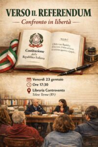 Proprio per questo – spiega l’avvocato Filomena Di Mezza – nasce l’iniziativa “Verso il Referendum – confronto in libertà”, in programma domani venerdì 23 gennaio presso la libreria “Controvento” di Telese Terme. L’incontro, organizzato in collaborazione con la Camera Penale di Benevento – prosegue Di Mezza – si pone l’obiettivo di riportare il tema al centro della società civile, vera destinataria della proposta referendaria. Un momento di confronto libero e aperto, pensato per informare, chiarire e coinvolgere i cittadini su una riforma che incide direttamente sul funzionamento della giustizia e sui diritti di tutti.