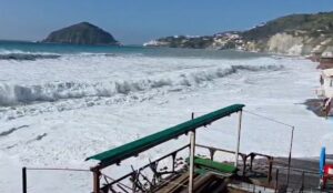 Da oltre due giorni un’impressionante mareggiata sta mettendo a dura prova le coste dell’isola d’Ischia maggiormente esposte ai venti provenienti dal terzo e quarto quadrante. Si tratta di una straordinaria ponentata che da ore sta generando forti folate di vento e onde alte che stanno creando non pochi problemi su tutta l’isola ma in modo particolare lungo la fascia costiera dei comuni di Forio e Barano.