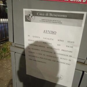 “A seguito di un post pubblicato da una cittadina, questa mattina abbiamo provveduto a trasmettere una PEC alla Polizia Locale, al Comune e al Servizio Veterinario dell’ASL, segnalando il presunto spargimento di chicchi avvelenati tra via San Giovanni di Dio e via Fatebenefratelli, nel Rione Ferrovia di Benevento, e richiedendo un intervento urgente a tutela della salute degli animali e delle persone.