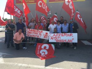 Riprende quota la protesta dei lavoratori Cgil della Carrefour che sono tornati a manifestare dinanzi all’ingresso del supermercato di via Pietro Nenni. La questione sollevata dal sindacato è la stessa: l’ambiguità delle varie aziende che si riferiscono alla catena francese che nel corso degli anni hannio cambiato nome ma i cui rreferenti sono sempre gli stessi. La questione non ha subito trasformazioni e allora i lavoratori sono tornati alla carica. Uno di loro è salito sul tetto del capannone e minaccia di gettarsi di sotto se non verranno accolte le istanze della Cgil