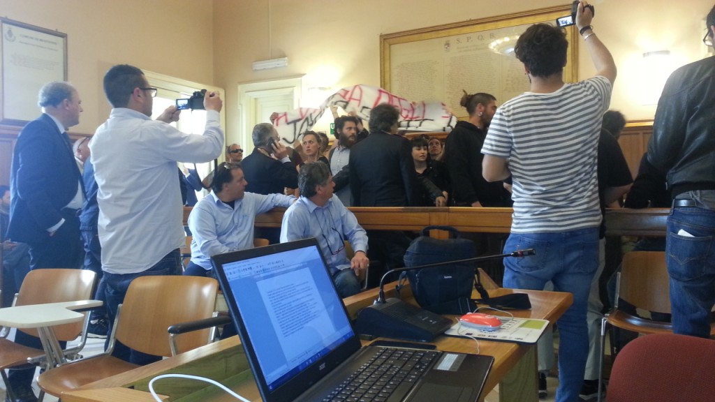 Nel bel mezzo del Consiglio comunale mentre si stava discutendo il Piano Urbanistico Comunale a Palazzo Mosti ha fatto letteralmente irruzione un gruppo di una ventina di persone appartenenti all’area anarchica cittadina che con slogan e striscioni ha protestato per il prossimo provvedimento di sgombero … Leggi tutto In Consiglio irrompono gli anarchici: ed è tensione