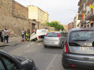 BENEVENTO- Paura in via Torre della Catena per un incidente che ha coinvolto tre vetture. Si tratta di una Fiat punto che per cause in corso di accertamento ha tamponato una lancia Musa che si trovava in sosta per poi finire su una Bmw. A seguito dell’urto la punto su cui viaggiavano madre e figlia si e’ ribaltata. Sul posto il 118 e una pattuglia dei vigili del fuoco. Per le due donne è stato predisposto il ricovero presso l’ospedale Rummo di Benevento.